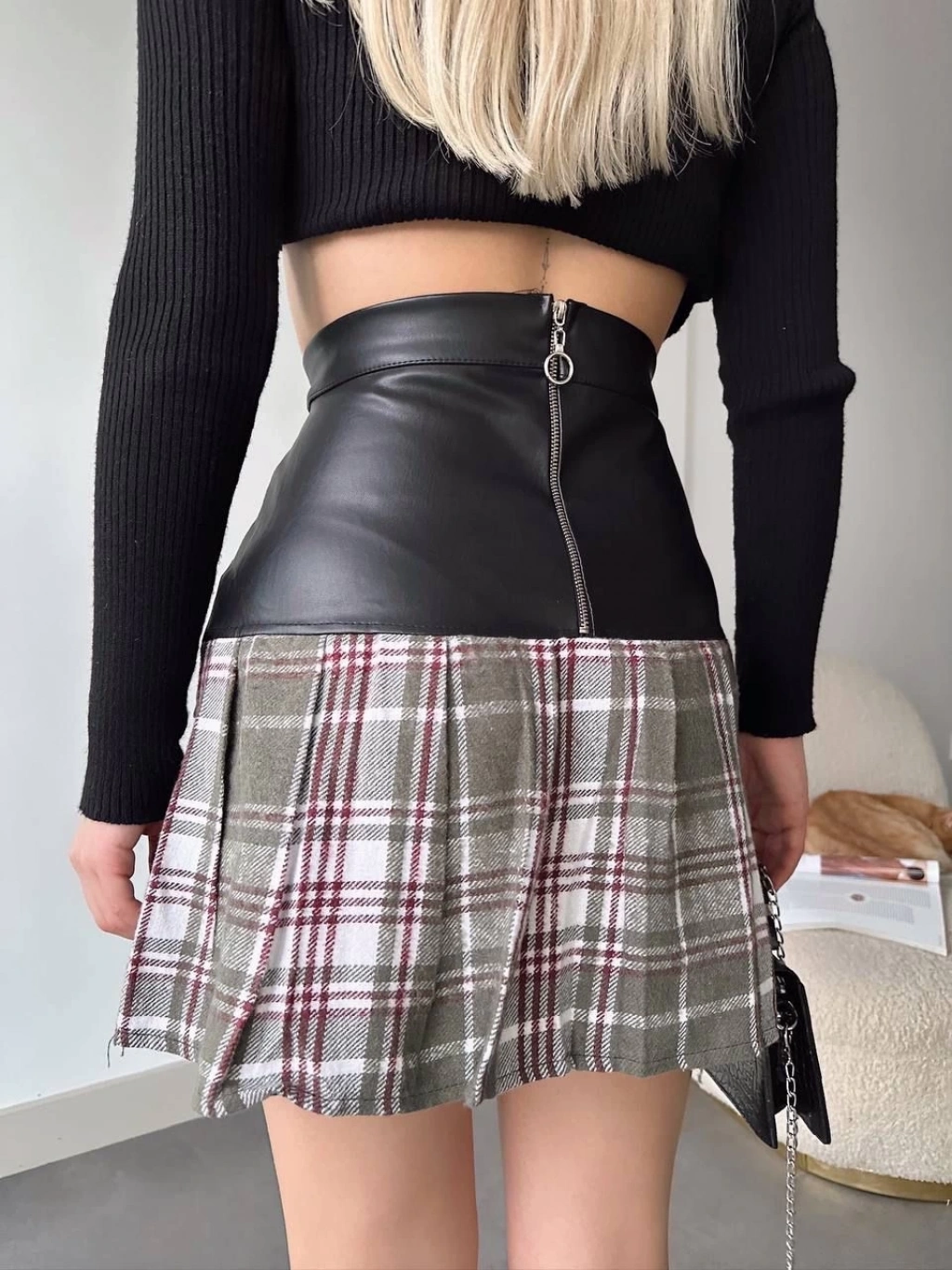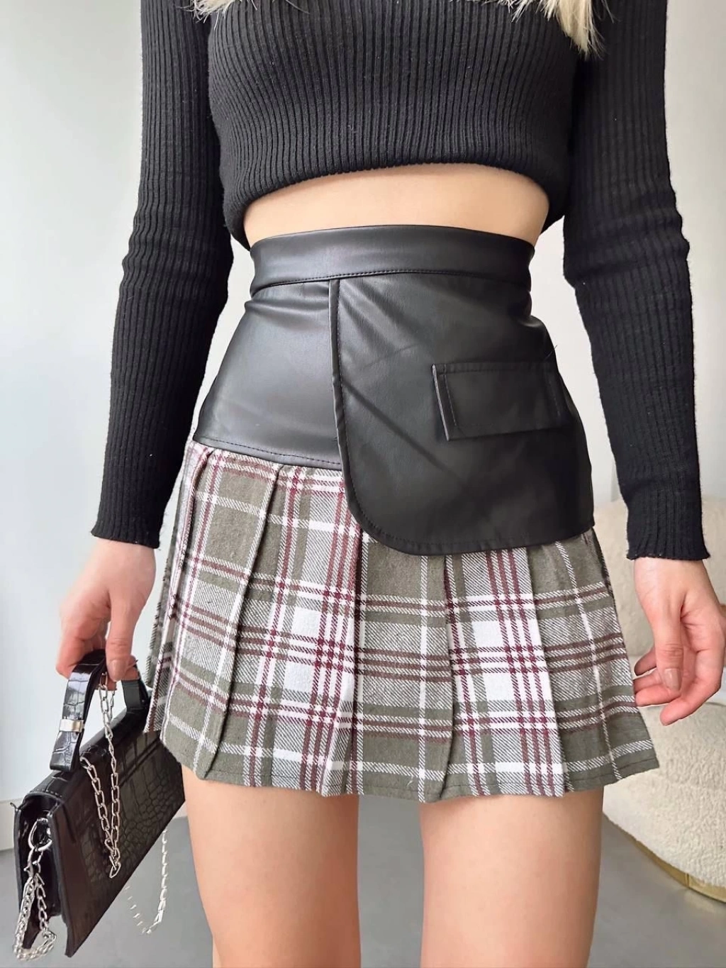 Deri garnili cepli ekose etek, gardırobunuzun vazgeçilmez parçası olmaya aday!