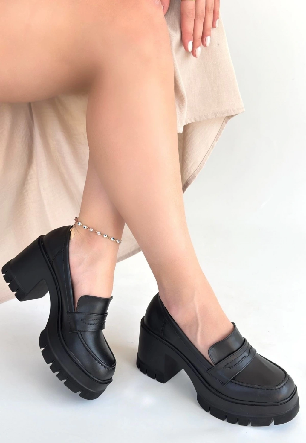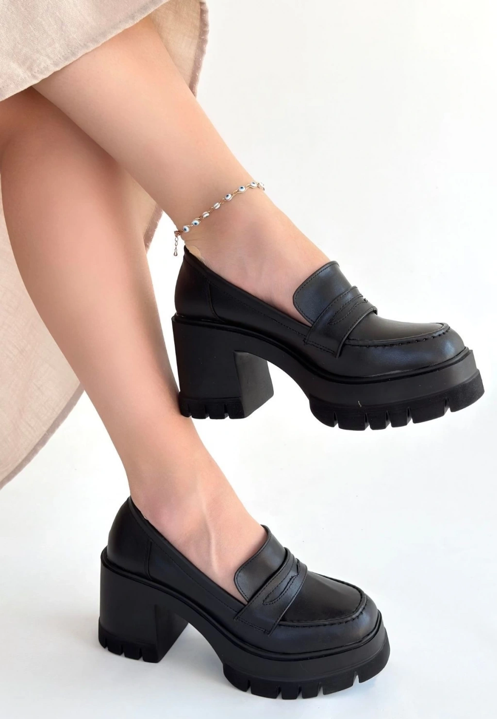 • Janes Siyah Cilt Dolgu Topuk Ayakkabı