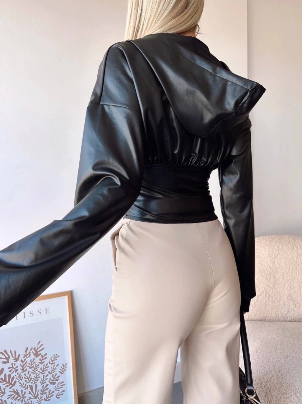 Şıklık ve rahatlık arayan kadınların tercihi olan siyah kapşonlu yarım fermuarlı ceket, her mevsim kullanım için idealdir.