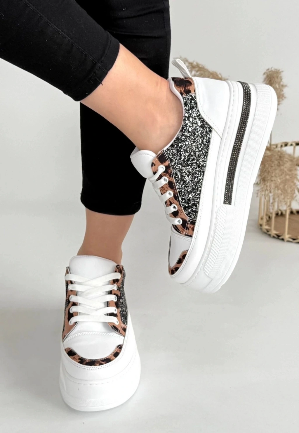 • Lawin Beyaz Cilt Siyah Simli Bağcıklı Spor Ayakkabı