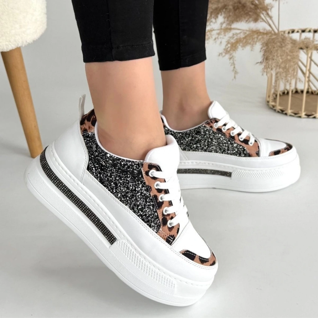 Lawin Beyaz Cilt Siyah Simli Bağcıklı Spor Ayakkabı