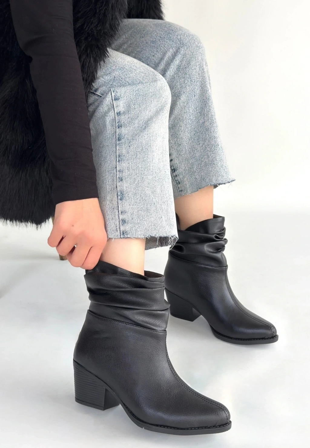 • Lukana Siyah Cilt Topuklu Körüklü Bot