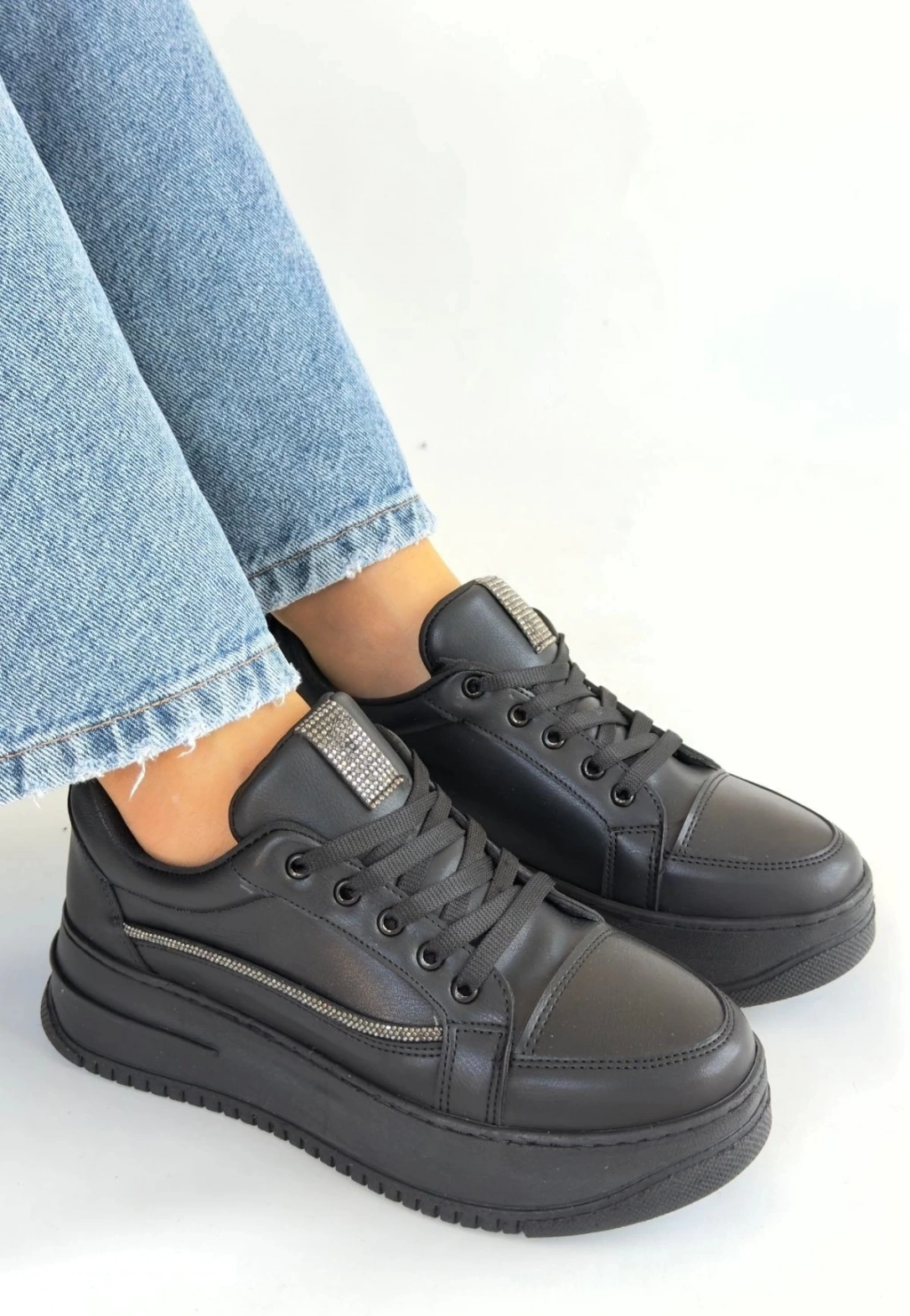 • Natte Siyah Cilt Bağcıklı Spor Ayakkabı