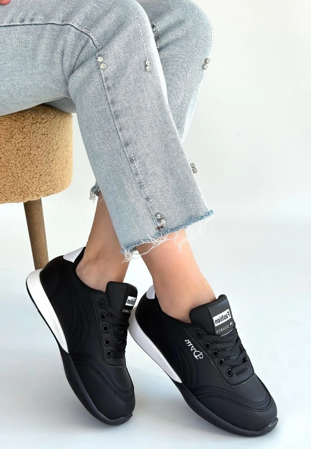 • Tawen Siyah Cilt Bağcıklı Spor Ayakkabı