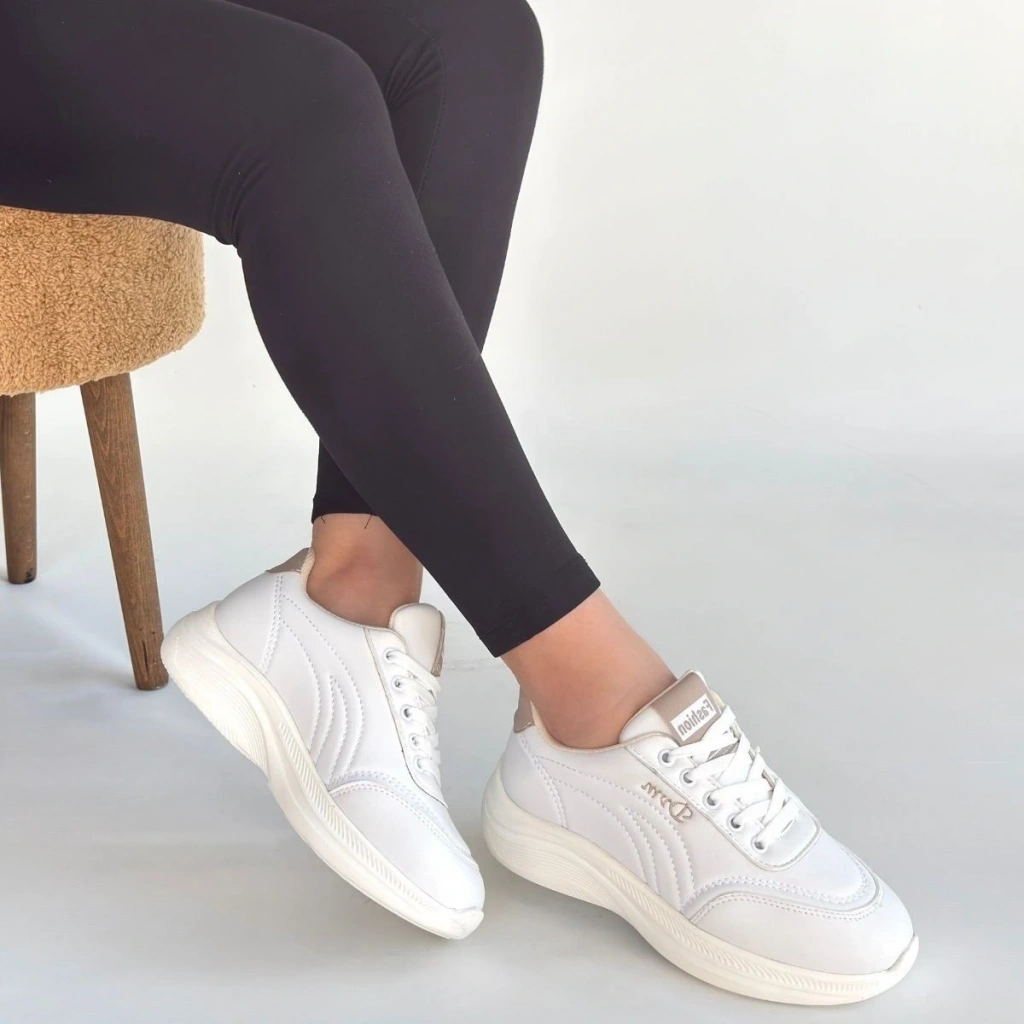 Yejja Beyaz Cilt Bağcıklı Spor Ayakkabı
